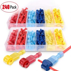 Nilight 50031R 240PCS 240 Pcs/120 Pairs Splice Wire Terminals T-Tap Self-Stripping with Nylon Fully Insulated Male Quick Disconnects Kit, 2 Years Warranty