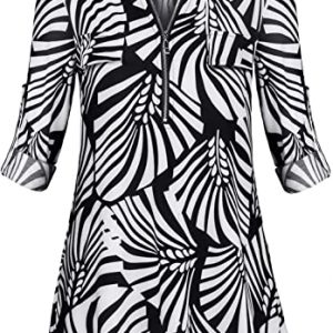 MIXJOY Baikea Women’s 3/4 Rolled Sleeve Zipped V Neck Plaid Shirt Casual Tunic Blouses